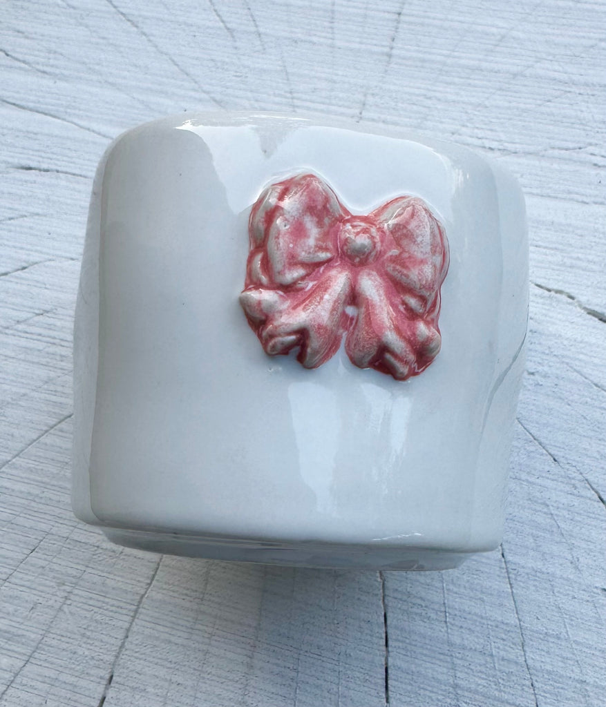 Cranky but cute wobbly mug small in pink. Tiny bow charm inside.